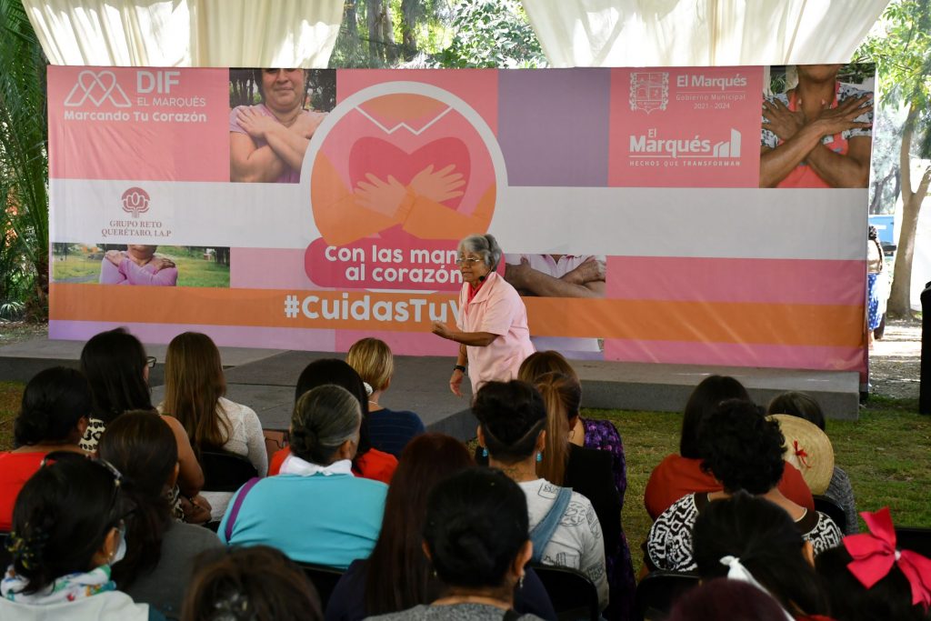 Como parte de los esfuerzos para prevenir y concientizar a las mujeres sobre la importancia de prevenir el Cáncer de Mama, el Sistema Municipal DIF de El Marqués, impartió la plática “Con las manos en el Corazón”, a más de 500 mujeres marquesinas, como parte de las actividades por el “Mes Rosa”.