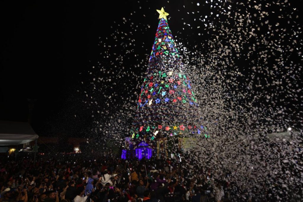 Como primera atracción, las autoridades estatales y municipales presenciaron un espectáculo a cargo de personajes de películas infantiles, que dio paso al encendido del Pino Monumental de 25 metros de altura que cuenta una estrella tridimensional de 4.5 metros, con estructura de acero cubierta de luces y alrededor se montó una gran villa navideña.